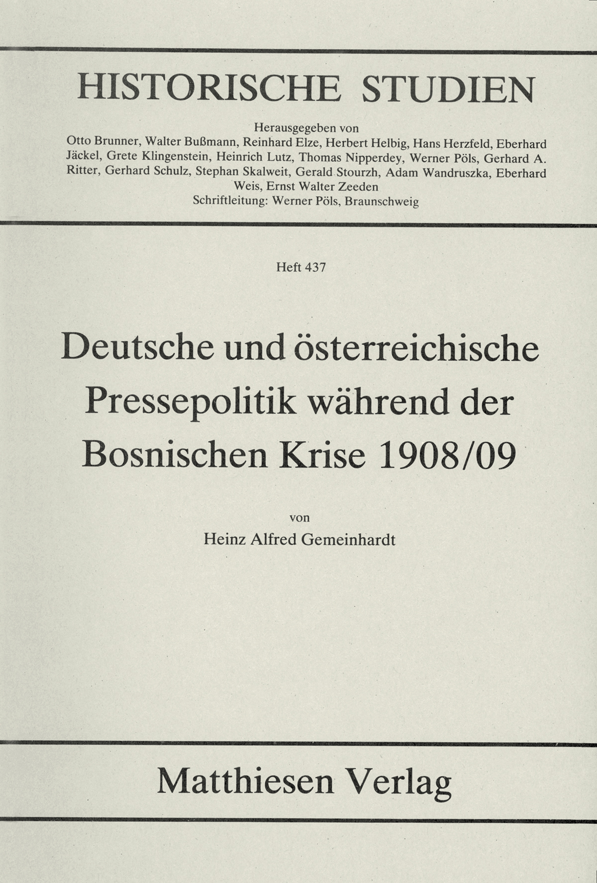 Gemeinhardt, Heinz Alfred: Deutsche und österreichische Pressepolitik während der Bosnischen Krise 1908/09