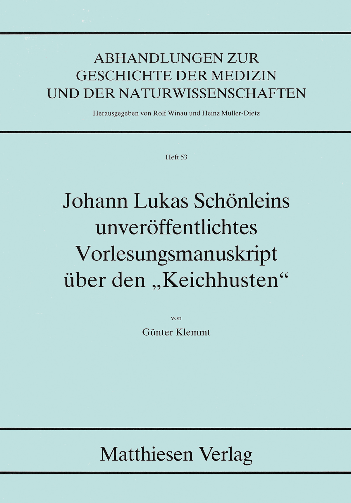 Johann Lukas Schönleins unveröffentlichtes Vorlesungsmanuskript über den „Keichhusten“