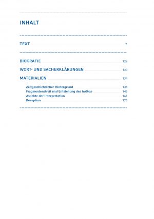 Das Hamburger Leseheft enthält neben dem ungekürzten Text (mit durchgängiger Verszählung) ein Nachwort, in dem der “Nathan” literaturgeschichtlich eingegliedert und auf Textgeschichte und Textgestaltung eingegangen wird, sowie umfangreiche Wort- und Sacherläuterungen.