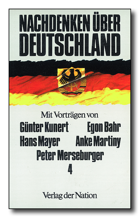 Der inzwischen berühmte Vortragszyklus in der Deutschen Staatsoper Berlin, zu dem seit Februar 1990 prominente Schriftsteller, Wissenschaftler, Philosophen, Politiker und Journalisten eingeladen sind, hat nicht zuletzt durch Übertragungen des Deutschlandsenders Kultur und des Senders Freies Berlin im gesamten deutschen Sprachraum große Resonanz gefunden. Nach Publikationen mit den auch international vielbeachteten Reden von Günter Grass, Rolf Hochhuth, Henry Marx, Adel Karasholi, Carl Friedrich von Weizsäcker, Günther von Lojewski, Peter Härtling, Klaus Höpcke, Kurt Biedenkopf, Gottfried Forck, Otto Schily, Lew Kopelew, Irenäus Eibl-Eibesfeldt, Konrad Weiß, Tina Stroheker und Hans-Peter Dürr sind dem Leser im nun vorliegenden vierten Band die Wortmeldungen von Peter Merseburger, Günter Kunert, Anke Martiny, Egon Bahr und Hans Mayer zugänglich.