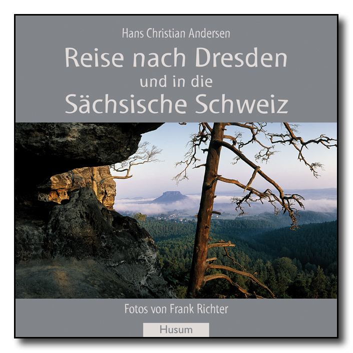 Die erste Auslandsreise Hans Christian Andersens führte ihn nach Deutschland. Er hielt seine Eindrücke von dieser Reise schriftlich fest, die noch im gleichen Jahr in Kopenhagen erschienen. Aus diesen „Schattenbildern einer Reise in den Harz, die Sächsische Schweiz etc. etc. im Sommer 1831“ umfasst der vorliegende Band die Abschnitte über Dresden und die Sächsische Schweiz, die der junge Andersen mit großer Begeisterung schildert. In Dresden trifft er bekannte Persönlichkeiten und besucht neben anderen Sehenswürdigkeiten der Stadt das grüne Gewölbe, die Gemäldegalerie, eine Theatervorstellung im „Linkeschen Bade“ und die Rüstkammer. Eine mehrtägige Wanderung durch die Sächsische Schweiz führt ihn u. a. zur Bastei, nach Hohnstein und Schandau, zum Lilienstein, zur Wolfsschlucht, zur Felshöhe „Kuhstall“ und schließlich bis nach Böhmen. Während die Stadt ihm vor allem intensive Kulturerlebnisse vermittelt, bedeutet der Ausflug in die Bergwelt der Sächsischen Schweiz eine überwältigende Naturerfahrung für den Dichter aus dem flachen Dänemark: „Es ging immer vorwärts, und immer änderte sich das große Panorama um uns her. Ein großes, hübsches Gebäude lag vor uns, es war das Wirtshaus auf der ,Bastei’. Hier ist es hoch, sehr hoch! Du musst ein paar Kirchtürme aufeinander setzen und dann nicht schwindlig dabei werden, wenn du auf der obersten Spitze stehst. Ein Gitter ist angebracht, damit du nicht fällst!“ Andersen fiel nicht, und daher haben wir ihm diese sehr persönliche Schilderung Dresdens und der großartigen Natur des Elbsandsteingebirges zu verdanken, die Frank Richter in beeindruckenden Fotografien eingefangen hat.
