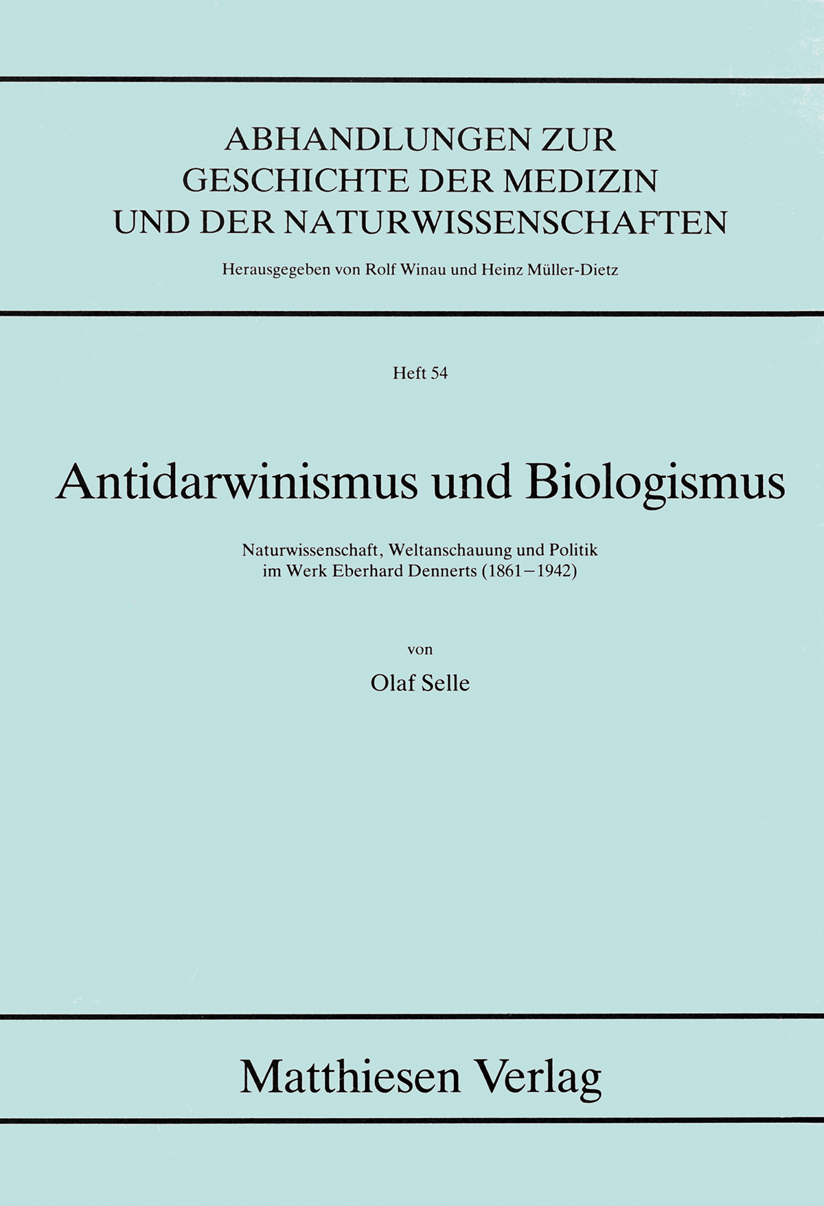 Naturwissenschaft, Weltanschauung und Politik im Werk Eberhard Dennerts (1861–1942)