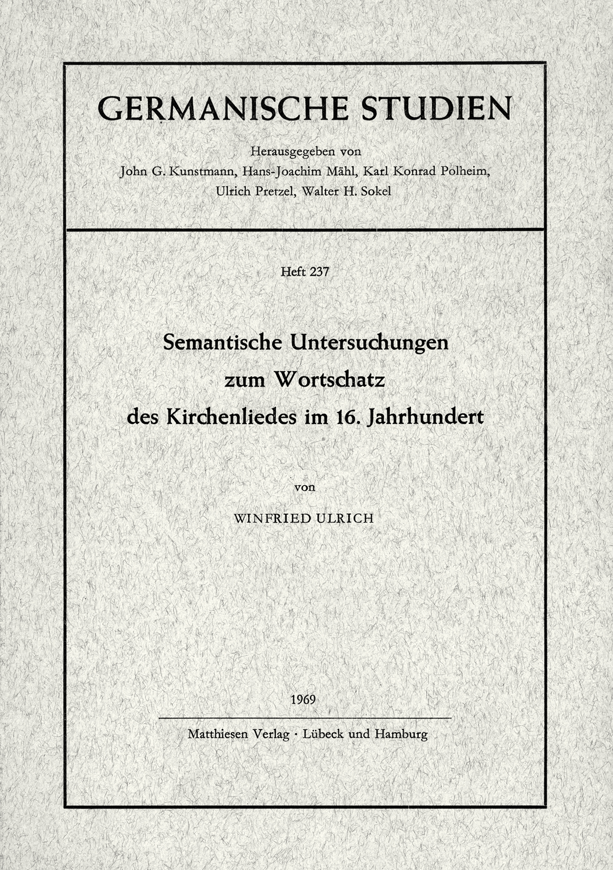 Semantische Untersuchungen zum Wortschatz des Kirchenliedes im 16. Jahrhundert