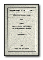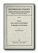 Wala griff als Graf, Mönch, Staatsmann und Abt in starkem Maße in die Reichs- und Kirchengeschichte des 9. Jahrhunderts ein. Um all seine Lebensschicksale mitsamt dem jähen Wechsel von Staatsämtern und Verbannungen angemessen darzustellen und seine Entwicklung einleuchtend zu schildern und würdigen, stützt sich Lorenz Weinrich zu großen Teilen auf eine neue Interpretation des „Epitaphium Arsenii“, verfasst von dem großen karolingischen Theologen Paschasius Radbertus, das neben den allgemeinen Quellen zur Reichsgeschichte die Hauptquelle für eine Biografie Walas ist. Weinrichs Werk ist chronologisch entlang der verschiedenen Lebensabschnitten Walas orientiert, beginnt in dessen Jugendjahren und endet mit den Jahren, in denen er als Rebell zunächst in seine dritte und dann die vierte Verbannung geschickt wurde, bis Wala, der jahrelang gegen den Kaiser gekämpft hatte, 836 mitten in seinen Bemühungen um eine Aussöhnung zwischen Ludwig dem Frommen und dessen Söhnen den Tod fand.